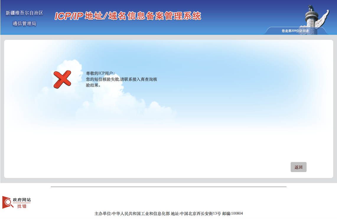 如果您 48 小時未完成短信驗證,備案系統會自動退回您的備案申請。您需重新提交備案申請。